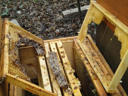 - Mausschaden, entstanden durch Flugloch, das nicht vollständig gesichert war (siehe Bild)
